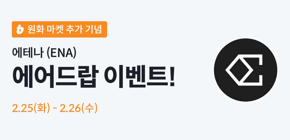 ENA 원화 마켓 상장을 기념하여 빗썸은 ENA 에어드랍 이벤트를 진행합니다.